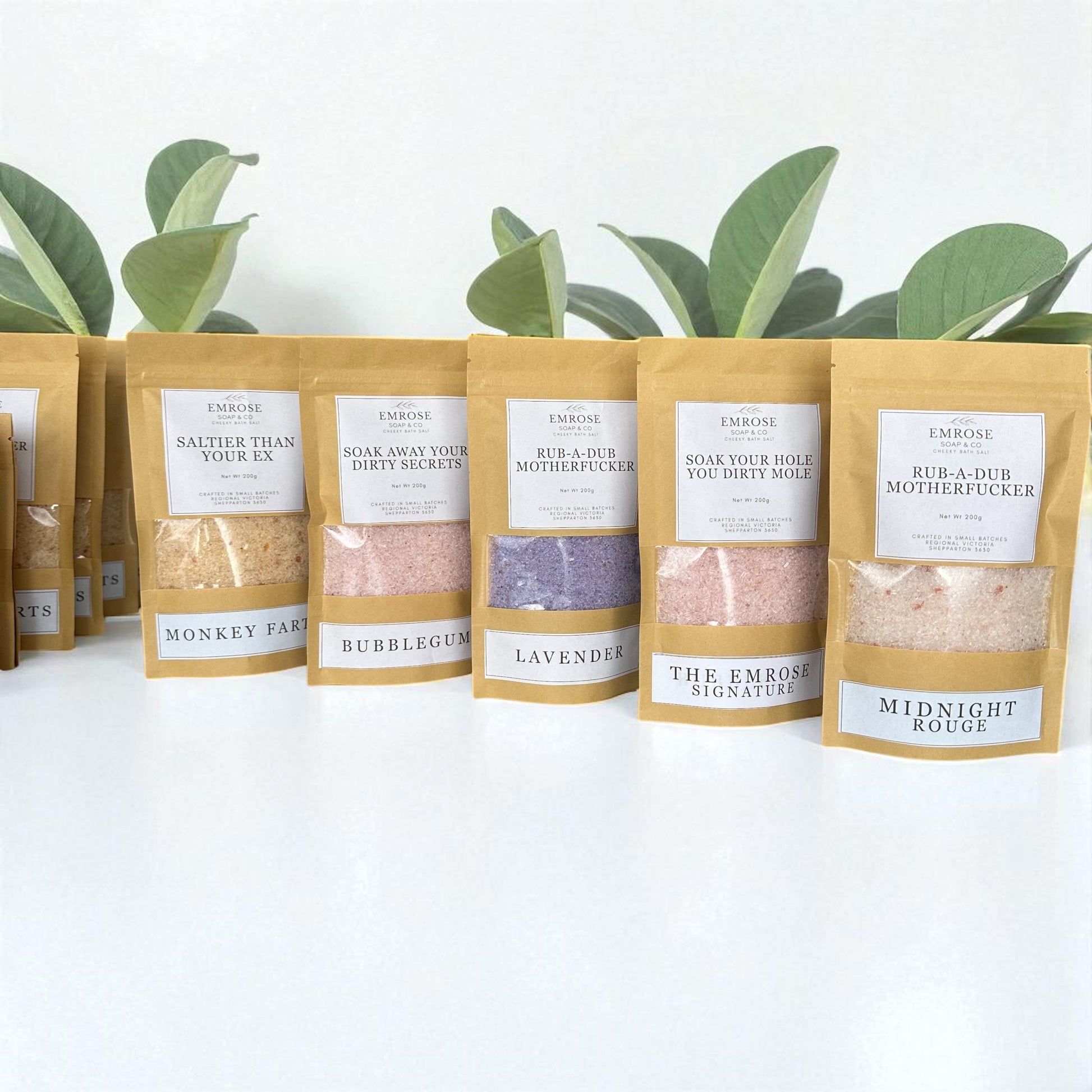 The 18+ Collection takes bath salts to a more playful space. These blends use the same safe, quality ingredients as the rest of our range but with names and personalities that bring extra fun - If you dare...